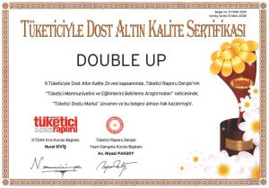 Dedeman Oteli’nde düzenlenen Tüketici Raporu Dergisi’nin zirvesinde ise DOUBLE-UP; “Yılın Ürün Geliştirme ve Tasarımı” dalında Tüketiciyle Dost Altın Kalite Ödülü’ne ve Tüketici Dostu ünvanına layık görüldü. Ödül, ünlü iş kadını Sema Çelebi tarafından takdim edildi.